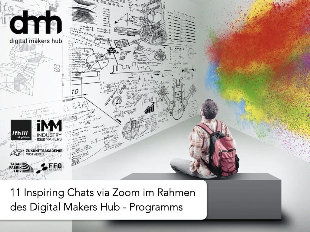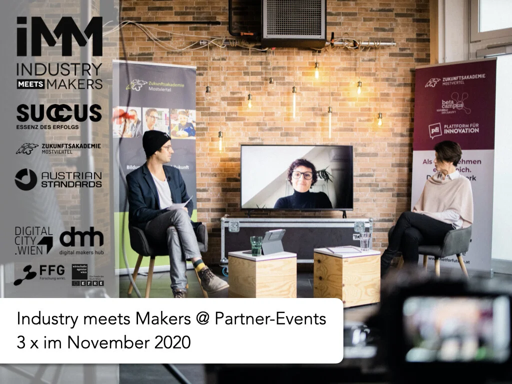 Die Kernlaufzeit unseres Industry meets Makers - Programms 2020 ist von April bis September gelaufen. Aufgrund der geltenden COVID-19-Sicherheitsbeschränkungen haben wir natürlich alle Programmpunkte in die virtuelle Welt verlegt. Wir sind am 16.4.2020 mit einem Online-Kick-off-Event an den Start gegangen und am 30.9.2020 im Rahmen unseres Best of Industry meets Makers-Events bei der Digital Days-Online-Konferenz ein 5. Mal gemeinsam über die Ziellinie gelaufen. Das absolute Sonder-Event-Format-Programm-Highlight war auch in diesem Jahr wieder unser Future Tech Bootcamp, das vom 29.6. bis 2.7.2020 im virtuellen Rahmen stattgefunden hat und bei dem erneut überraschend viele konkrete Ergebnisse entstanden sind. Zudem waren wir auch wieder bei einigen Partner-Events vertreten, wie u.a. dem IoT Kongress von Austrian Standards am 4.11.2020, dem IoT Forum CE von Succus am 5.11.2020 und dem 4. Amstettner Zukunftsforums am 20.11.2020, und haben fleißig weiter am Ausbau unseres Digital Makers Hub-Programms mitgearbeitet, das sich vor allem an KMUs richtet und zu dessen Konsortium Industry meets Makers seit 2019 zählt. Ein ganz besondere Programmlinie stellte in diesem Zusammenhang der Start unserer Inspiring Chats-Serie dar.